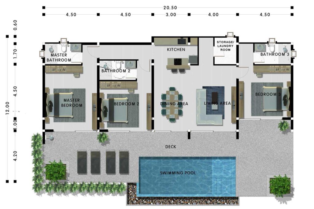 | Pool Deck/Terrace/Walkway around Villa | 68,1 sqm |
